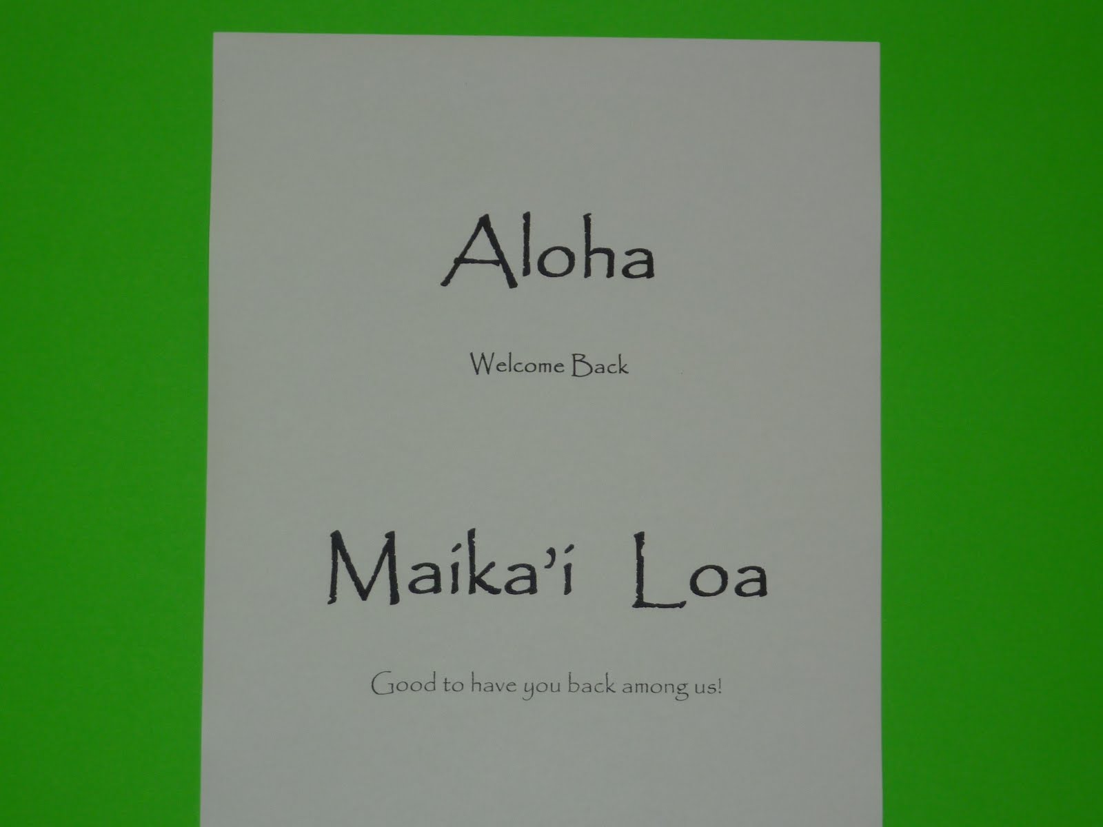 It didn't seem to matter. I didn't quite feel ready but April 1 came anyway, and I plunged back in, ready or not. It was such a rush. My mutual ministry committee had graciously put up welcome back signs and people wore leis and name-tag signs welcoming me back. There were little sheep on the signs which said things like, "Aloha Pastor Lisa" and "Welcome back Shepherd Lisa!" I was given a corsage and a bouquet of flowers. There was a reception with goodies. People said kind words, offered me handshakes and hugs. It was fun and it was humbling.